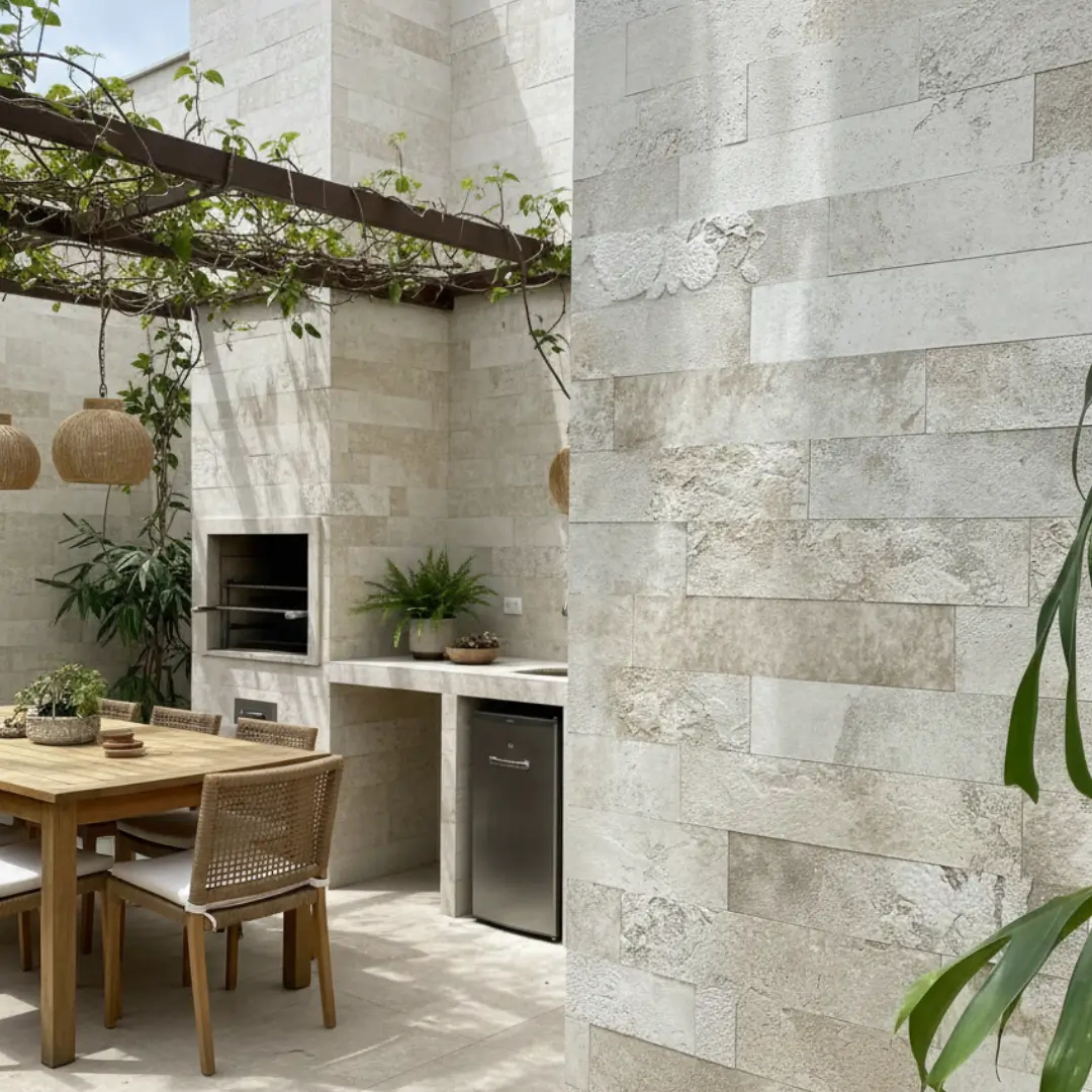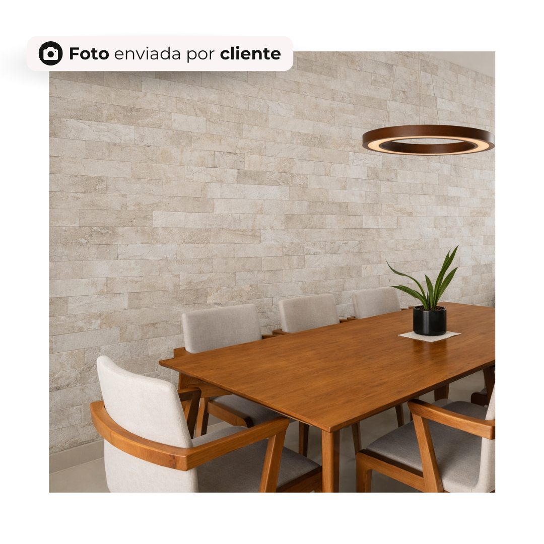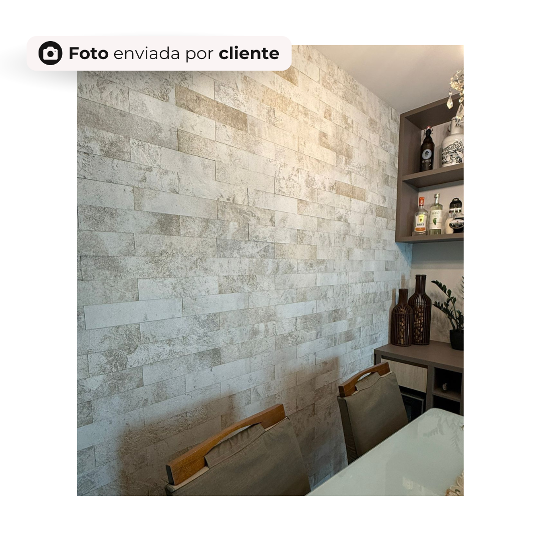 Com apenas 3 mm de espessura, o revestimento Brick Travertino oferece aplicação prática e limpa, sem necessidade de rejunte, ideal para paredes internas e externas. Valorizando todos os ambientes como salas, cozinhas, áreas gourmet, lavabos e projetos que buscam o charme dos tijolinhos aparentes com praticidade.
