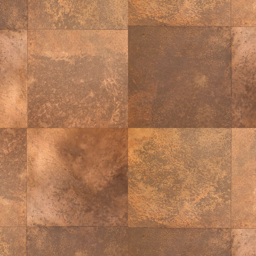 Revestimento autocolante Cobre em tons terrosos que variam do marrom profundo aos reflexos acobreados, produzido artesanalmente em pedra natural adesiva de base mineral. Este revestimento combina sofisticação, praticidade e durabilidade em uma única peça.