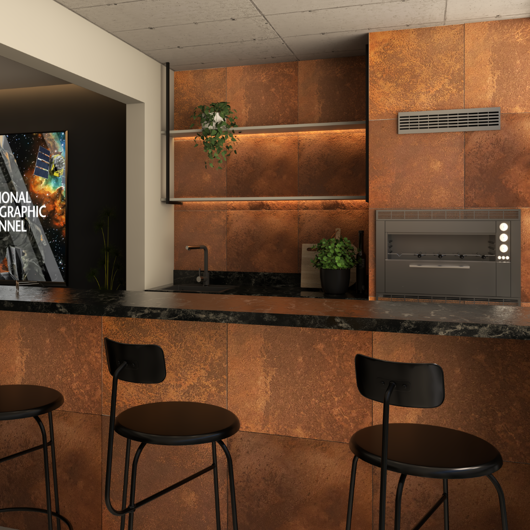 Com textura que simula com perfeição a elegância das chapas de cobre, é ideal para transformar paredes internas e externas sem sujeira, sem obra e com instalação simples, perfeito para quem busca uma obra limpa e seca. O revestimento Cobre também é conhecido como revestimento adesivo ou autoadesivo, sendo indicado para salas, cozinhas, áreas gourmet, lavabos e até fachadas.