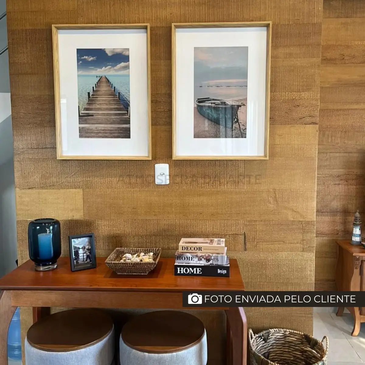 Extremamente versátil, este revestimento pode ser aplicado tanto em paredes quanto em tetos, sendo uma excelente opção de revestimento madeira para teto, que transforma ambientes com aconchego e sofisticação. Com apenas 3 mm de espessura, as tábuas são finas, leves e flexíveis, permitindo aplicação em diversas superfícies — inclusive curvas — pelo sistema de junta seca.