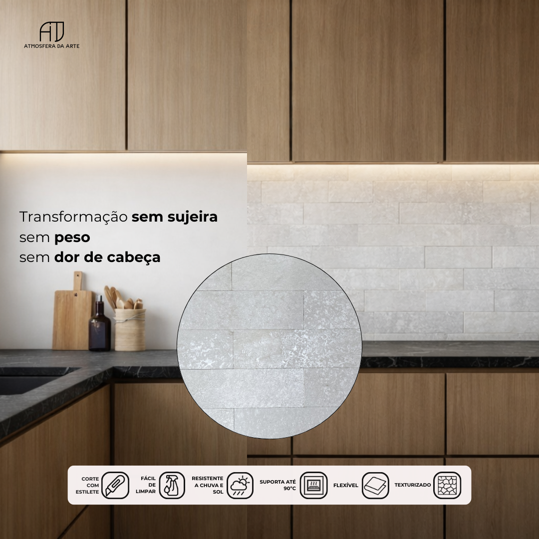 Com aplicação prática pelo sistema de junta seca, sem necessidade de rejunte, este revestimento é perfeito para transformar ambientes internos e externos sem sujeira e sem obra, garantindo um resultado limpo e refinado.