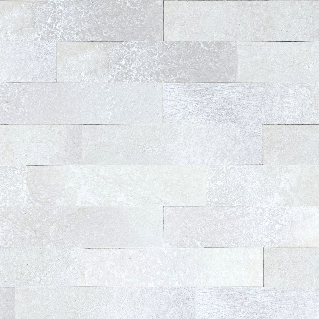 Revestimento autocolante Madrepérola em tons delicados de branco e pérola, produzido artesanalmente em pedra natural adesiva de base mineral. Sua superfície sutilmente metalizada reflete a luz de forma elegante, criando uma estética suave, serena e sofisticada.