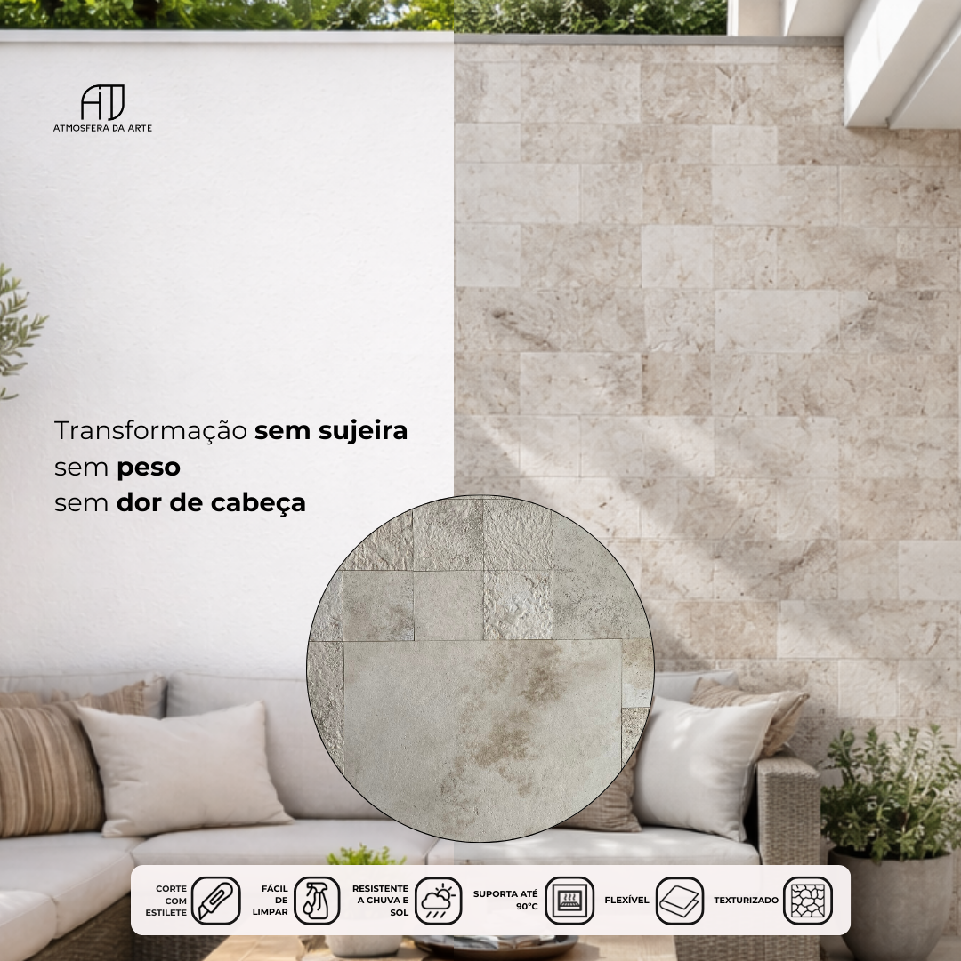 Com relevos e texturas que refletem a autenticidade da pedra, é ideal para renovar paredes internas e externas sem sujeira, sem obra e com instalação simples, perfeito pra obra limpa e seca. O revestimento Mosaico Travertino, também é conhecido como revestimento adesivo ou autoadesivo, este mosaico é perfeito para cozinhas, salas, áreas gourmet e lavabos.